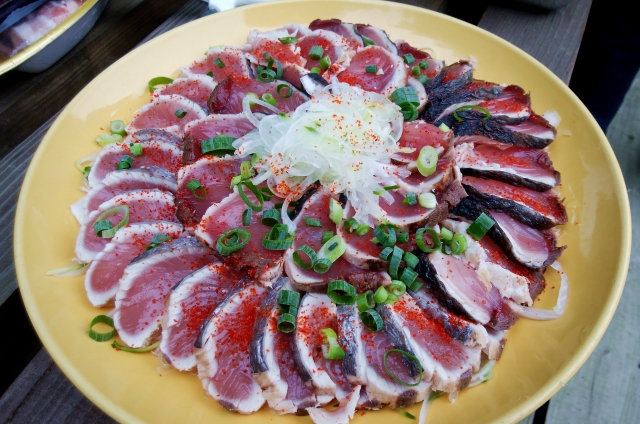 明神丸はひろめ市場にも入っていて、そこでよく藁焼きカツオたたきを食べていました。